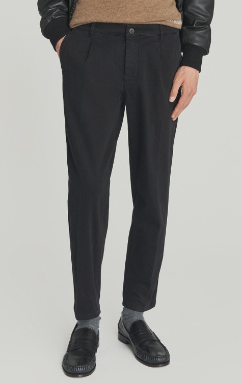- Due tasche all’americana sul fronte e due tasche a filetto sul retro con bottone logato.
