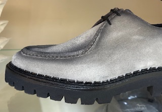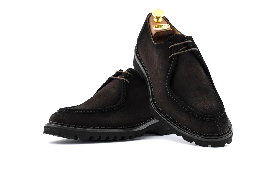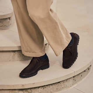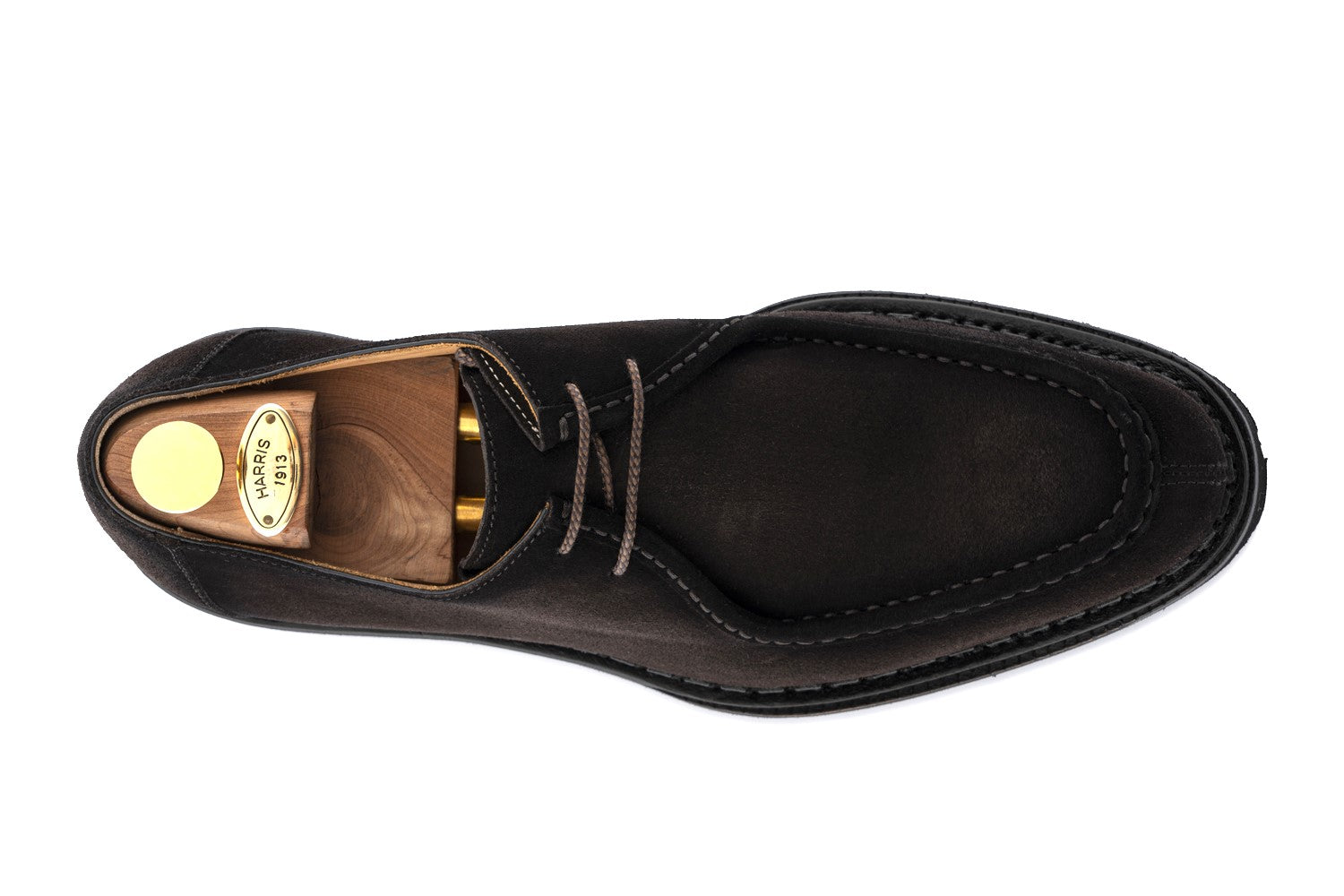 stringata Harris dallo stile raffinato e contemporaneo, realizzata in suede di vitello sfumato a mano che esalta profondità. La maestria artigianale si riconosce nei dettagli, dalla cucitura a mano che impreziosisce il tomaio alla lavorazione Blake Rapid, garanzia di resistenza e flessibilità. A completare la scarpa, la suola in gomma carrarmato, che dona comfort e stabilità senza rinunciare all’eleganza.